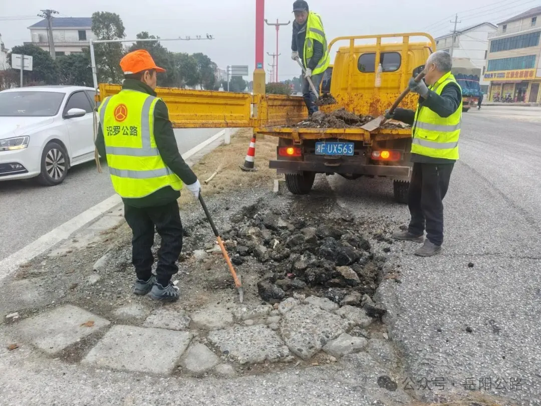 汨罗公路:精准修补坑槽 全力筑牢春运安全防线