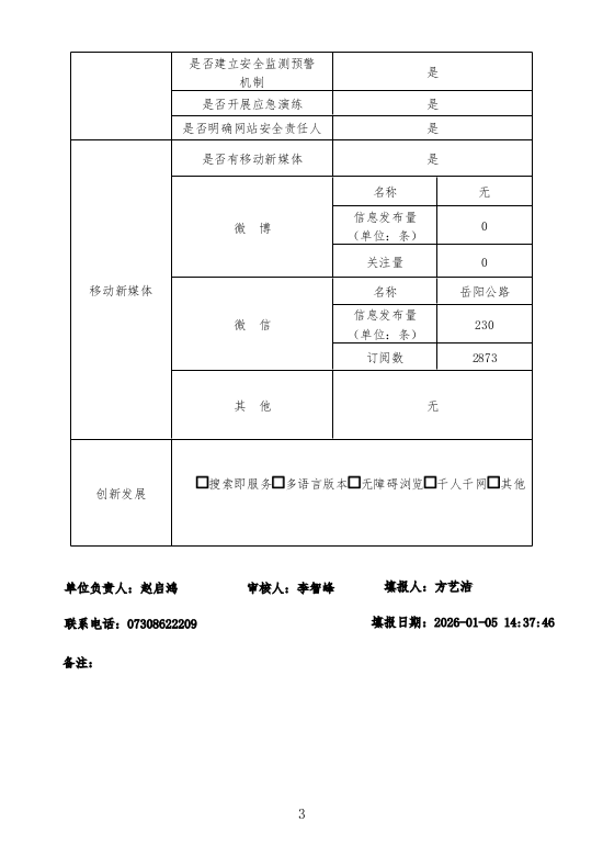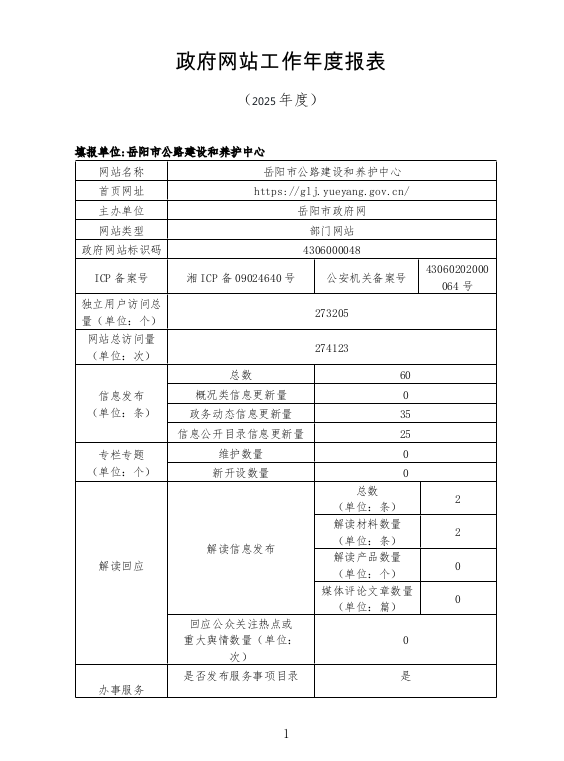 岳阳市公路建设和养护中心网站工作2025年度报表
