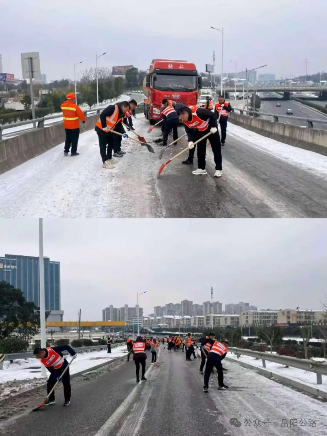 凌晨的长康路上,寒风刺骨,万籁俱寂,但公路除冰现场却热火朝天。大型机械轰鸣着开足马力,高效铲除路面积雪;养护人员手持铁锹、扫帚,细致清理边角处的余雪;紧随其后的撒布车向重点路段均匀撒布融雪剂,以防止路面再次结冰。黄可慰问了被困司乘人员和奋战在一线的养护职工,检查了抗冰保畅工作情况,并对下一步工作作出了安排。