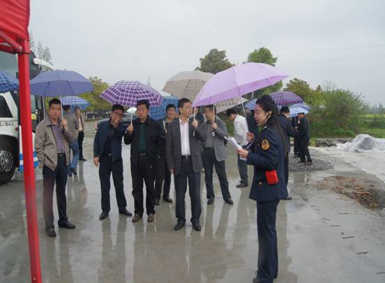 (从左至右)华容县人民政府副县长谢志辉,县公路局书记、局长黄林,市公路局书记、局长冯嘉皇,市人民政府副市长陈恢清等一行视察检测场地