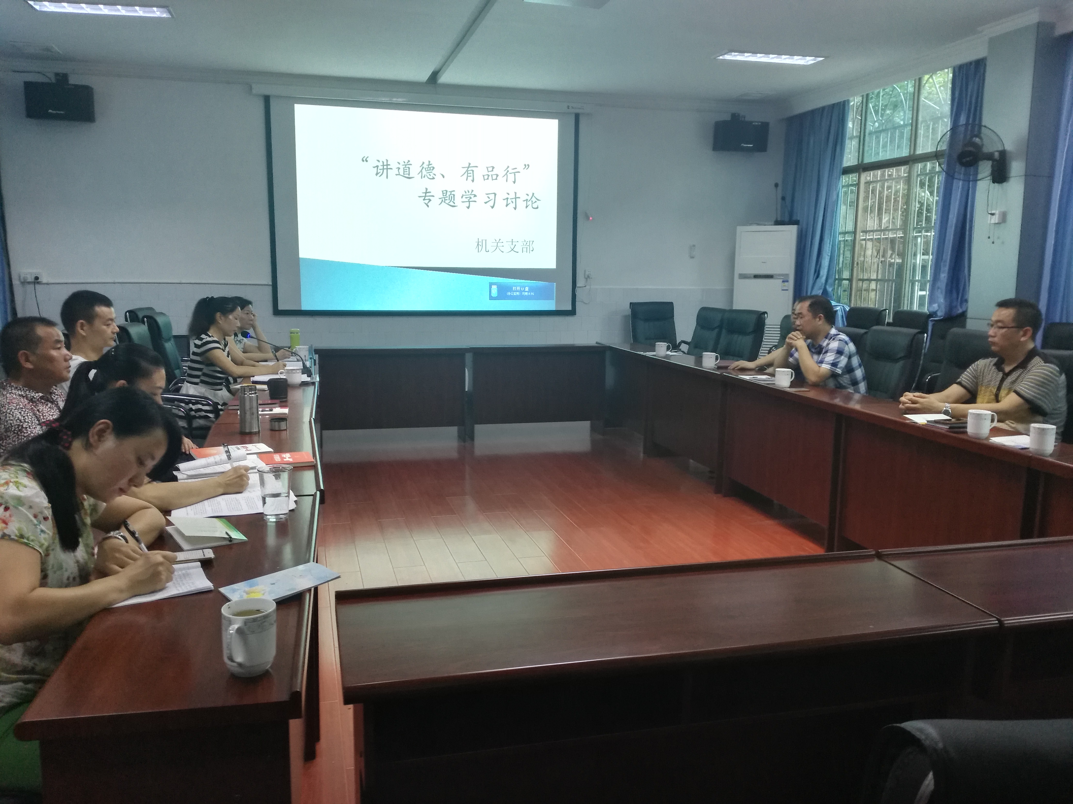 9月5日汨罗市公路局机关支部召开“讲道德、有品行”专题讨论会,会议由支部书记汤娟主持,局长游清、副局长谢日东、工会主席湛文波及机关支部全体党员参会,预备党员列席会议参与讨论。