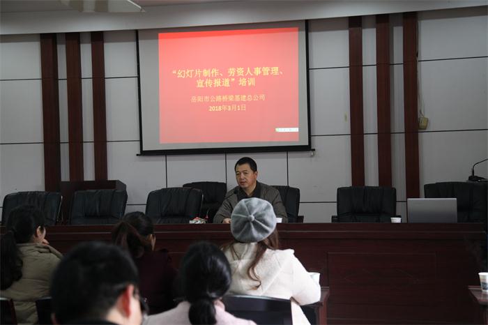 3月1日上午,继第六届岳阳路桥青年论坛圆满落幕后,总公司趁热打铁,量身定做推出了“幻灯片制作、劳资管理、宣传报道”培训班,来自公司各单位对口岗位人员及爱好者约90余人参加了培训。