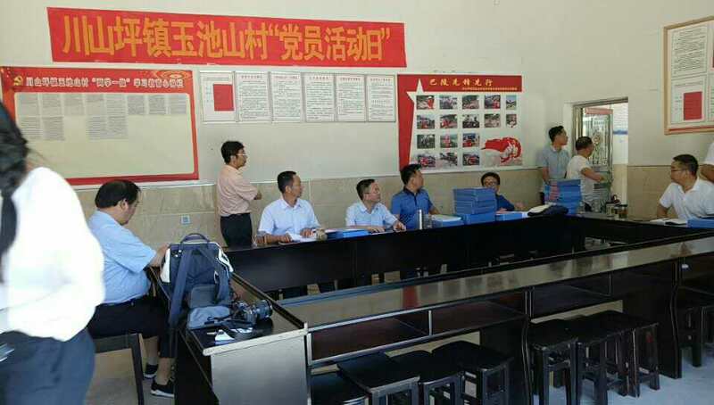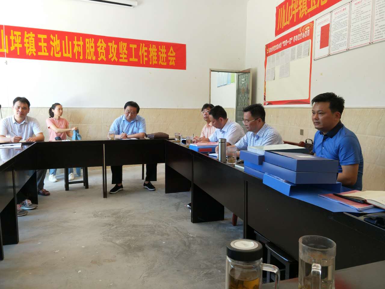 在村支部会议室,书记喻文通过听汇报、查资料、问成效,详细了解玉池山村精准扶贫工作开展情况,与在场的镇、村、驻村工作队共同讨论脱贫攻坚的好思路和好方法,并强调一定要摸清贫困底数,深入分析致贫原因,逐户制定帮扶措施,切实做到精准发力、有的放矢,充分调动贫困户的能动性,认真解决好现有扶贫政策、项目资金与群众需求的有效对接,如质如期完成玉池山村“村出列、户脱贫”的减贫目标。在“移风易俗、留住乡愁”工作中要加大宣传,把“刹人情歪风、治婚丧陋习、树文明新风”落实到村、组和党员村干部的心头,建设和谐群众的关系,减少歪风陋习。并明确指出镇村干部、党员必须要起带头模范作用。在村部文化活动中心的建设上,强调川山镇坪要把前期的选址、村组会议、改扩建规划、方案务必做实做细,确保在年内完成。