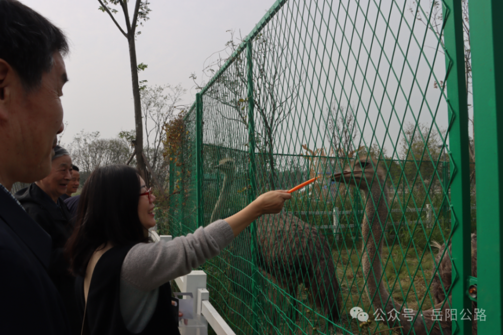 随后,大家坐上了观光游览车前往麋鹿生活区近距离观赏,只见一群群被誉为“湿地精灵”的麋鹿或悠闲踱步,或低头觅食,其矫健的身影与大自然构成了一幅和谐动人的生态画卷。接着老同志们还观赏了园区内的鸵鸟和梅花鹿,并投喂准备好的专用食料。