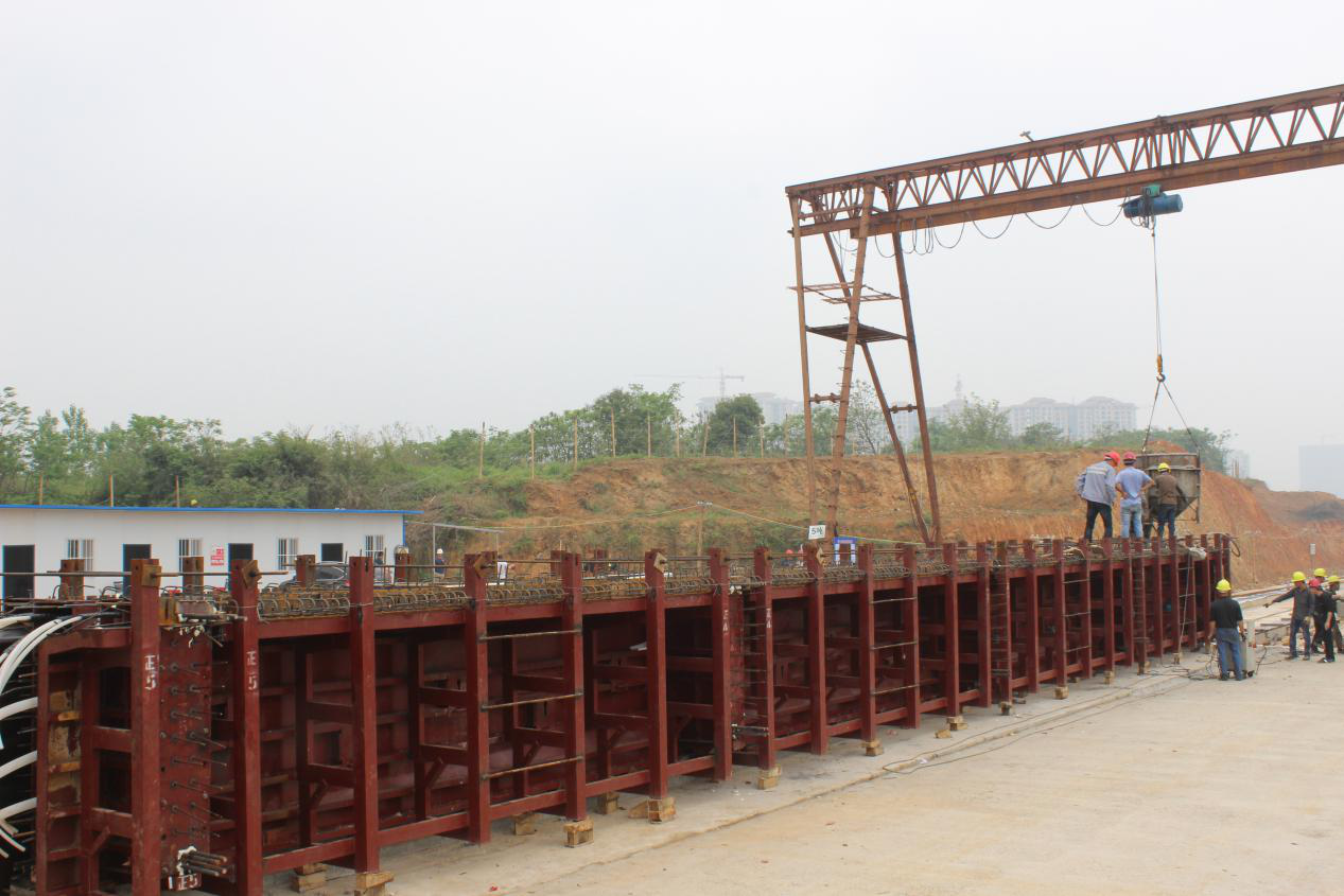 4月15日,通衢公司北港大桥首片25米T梁成功浇筑,拉开了制梁场优质批量生产大桥梁板的序幕,为北港大桥的铺架筑起了“钢铁脊梁”。