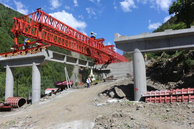 夹壁特大桥右线上部结构采用75×30米预应力混凝土简支T梁,桥梁全长2274.米,左线上部结构采用76×30预应力混凝土简支T梁,左线全长2304米。为确保第一片梁板安全顺利架设,项目总工室、安全环保部、桥梁部负责人等相关技术负责人组织施工队伍负责人及架桥机操作手、安全员、现场施工员进行安全技术交底,确保操作手安全顺利操作。为确保架桥机设备安全性能,5月底,安全环保部提前邀请阿坝州技术监督局特种设备科对架桥机进行了专项安全检测。同时在梁板架设过程中,安排安全员对桥梁架设区域100米范围内进行疏导与现场安全管制,确保过往人员车辆安全。