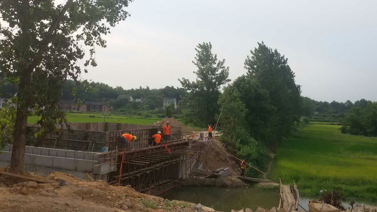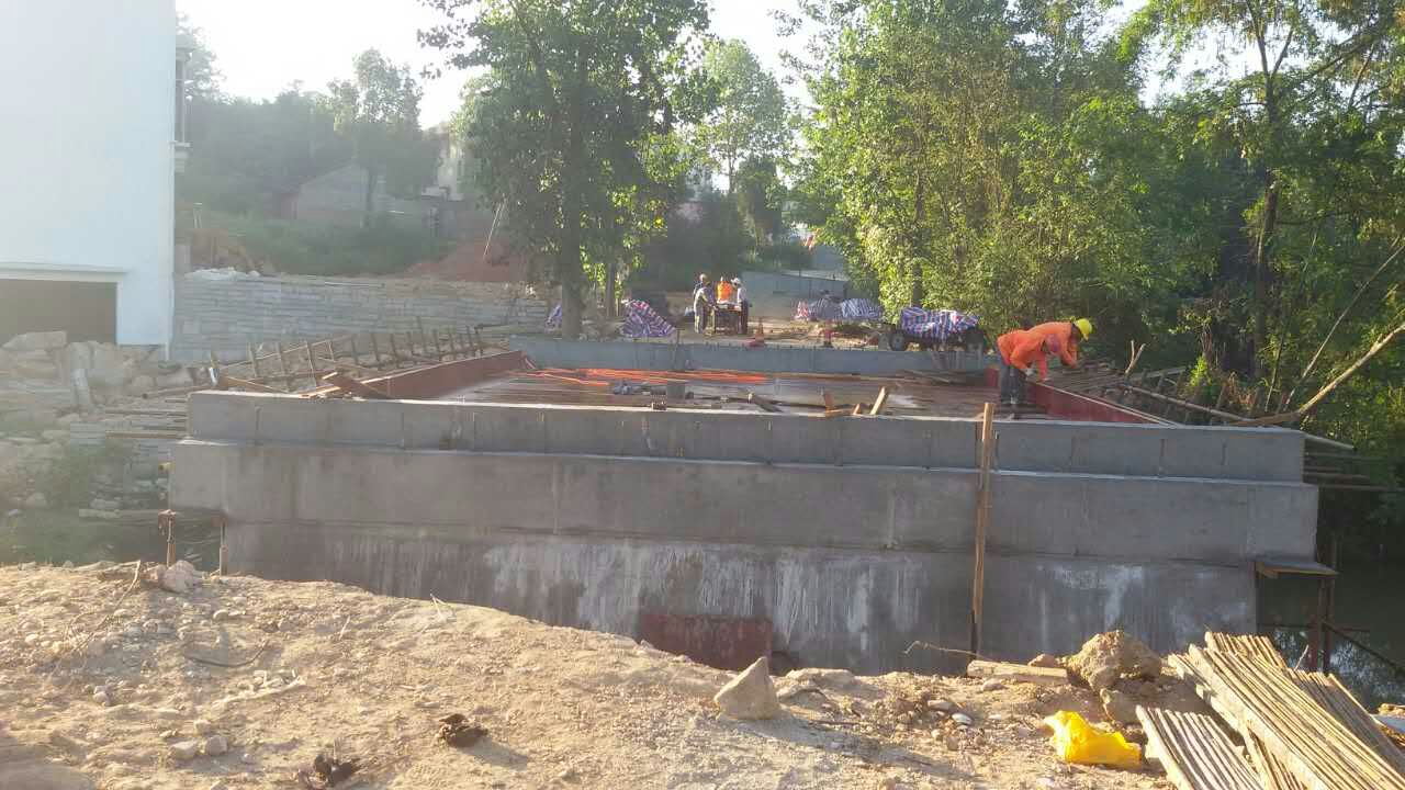 9月1日下午6点,泥家坝桥顺利通过桥台、支架的预压实验,正式进入桥面砼现浇工序。本次预压根据设计文件采用水静载的形式,以检测支架及台帽的承载能力。这是今年汨罗局8座改造的危桥中首座试行预压的桥梁。我局为保证质量,项目经理杨光辉、施工员彭子厚通宵守在实验现场,全程监测预压情况。本次检测按桥板自重及施工荷载的1.2倍24小时静载实验,以防止支架变形、砼开裂。泥家坝桥位于四级公路县道X047培长线K2+250处,原桥为1孔10米的浆砌片石拱桥,桥长12米,宽8米,建于1988年,当时设计荷载为汽-15,原桥拱圈贯穿裂缝,省公路局认定为四类危桥,无加固价值,需拆除重建。综合地形、水文、地质等条件,新桥采用1孔11.4米的整体现浇钢筋砼简支空心板桥,设计年限50年。建成后的梁桥承载力、抗震及泄洪能力都将得到很大的提升。