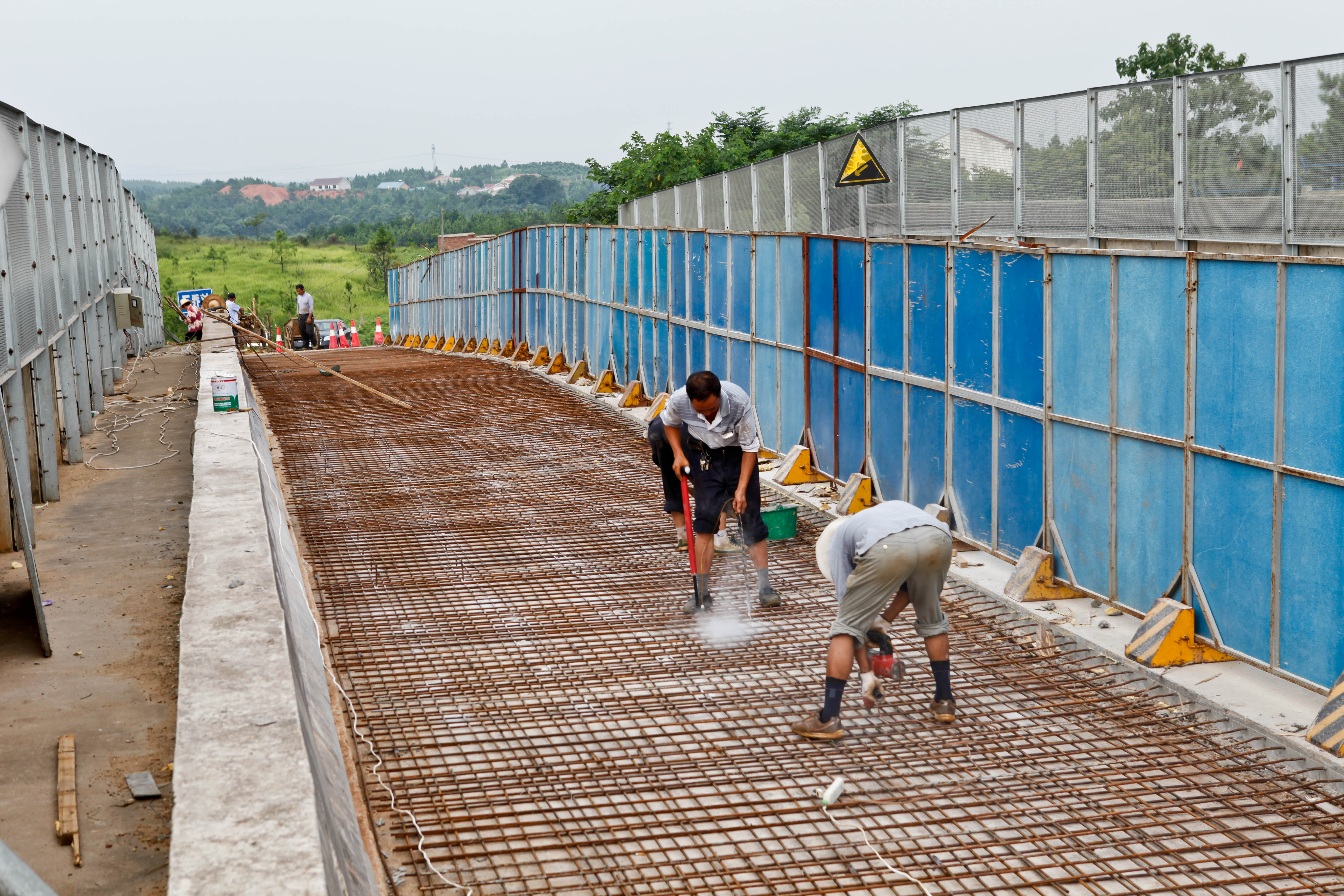 该桥于2008年建成,位于武广高铁DK1488+835米处,长110米,宽10.5米,是沟通S201和G107的重要通道。由于建成后特别是近年重车荷载剧增,相继出现桥面龟裂、伸缩缝损坏等问题。2013年,该桥被省公路局列入危桥改造项目。本次维修将重新铺设钢筋混凝土桥面,更换全部伸缩缝,由汨罗市公路局负责施工,株洲高铁工务段协助施工期间与之相关的铁路安全与协调工作。