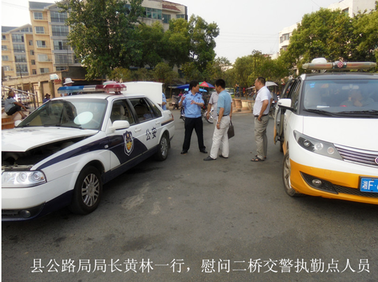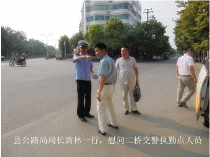 7月22日—7月23日,华容县公路局局长黄林一行,代表二大桥加固维修业主方对执勤的交警进行了慰问,感谢公安交警冒烈日顶酷暑、夜以继日地工作,对他们辛勤工作表示衷心的感谢。