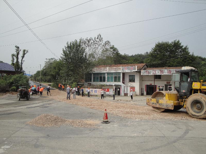 2014年8月27至28日,岳阳市区公路局采用沥青路面层铺施工技术对管养的龙乌线(X030线)K4+800m-K5+600m路段进行面层铺设。