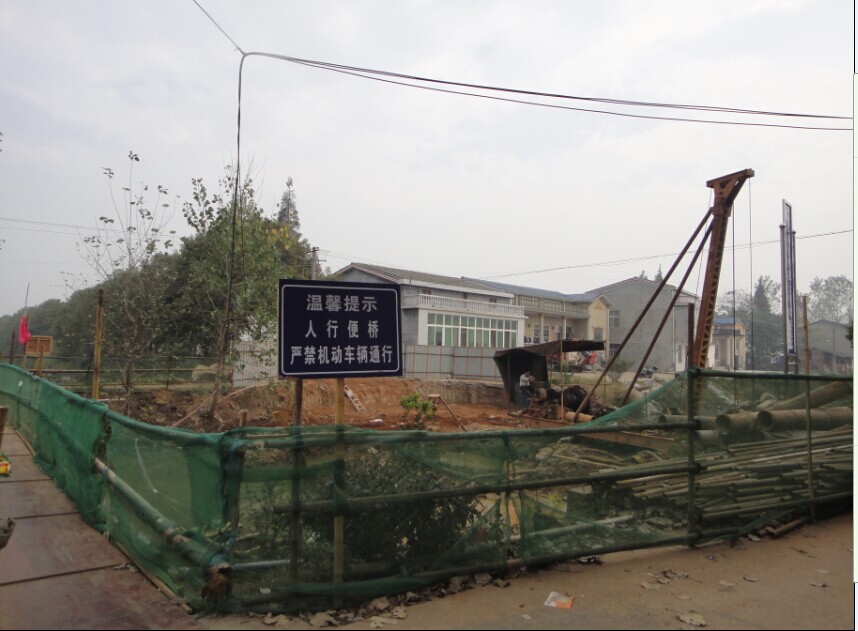 湘杨桥位于湘阴局管养X057公路上。该桥原为一座2跨7米的普通钢筋砼空心板桥,旧桥基础为实体桥墩,重力式桥台。近年来,随着县域经济快速发展,车流量和超载车辆增多,使用时间较长等原因,该桥梁经过风雨洗礼,逐渐不堪重负,桥墩和桥台均出现严重开裂,给百姓出行带来不便,成为了新农村建设发展中的交通瓶颈。市、县局领导高度重视,为切实践行群众路线,给老百姓架起惠民连心桥,积极向上争取资金,计划在原桥址重建一座1-14.4M的预应力空心梁桥。湘阴局挑选技术精湛娴熟的工程技术人员成立了危桥改造工程项目部,目前正加班加点进行打桩施工。