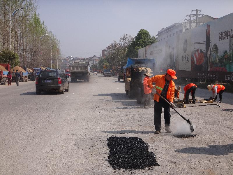近日,岳兴公路管理所组织全体养护工人及机械设备正全力以赴抢修水毁路面,为管养公路早日安全畅通加班加点。