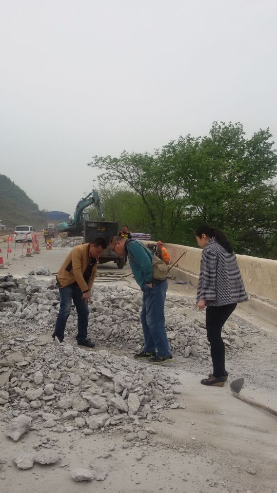 由于临湖路施工建设对边坡的破坏及重型机械的碾压,致使G107线路口铺跨铁桥桥头两端路基沉陷路面开裂及桥面局部破损钢筋裸露,严重影响过往车辆通行安全。对此,临湘管理所特邀局、处养路科现场勘察,探明此次病害产生的原因,积极开展修补工作。此次修补采取半幅封闭的施工方案,先对桥面板破损,钢筋裸露的部分进行凿除,重新布置双层钢筋网片,再浇筑混凝土;对桥头路基沉陷及路面破损地段进行挖除至底基层,根据开挖深度采用两层混凝土浇筑,面层布置双层钢筋网片采用混凝土浇筑。