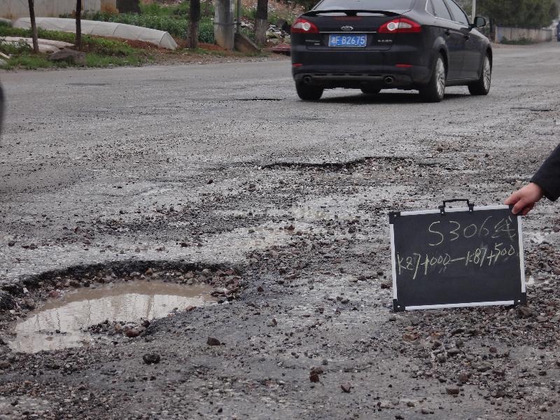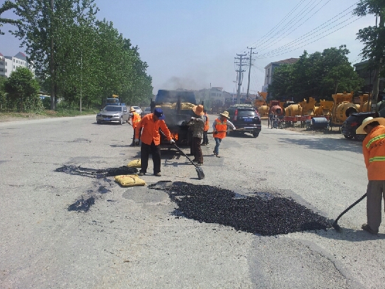 目前,据该所养护站王站长估计,该路段的路面修补最少还要三天时间才能修补完成。