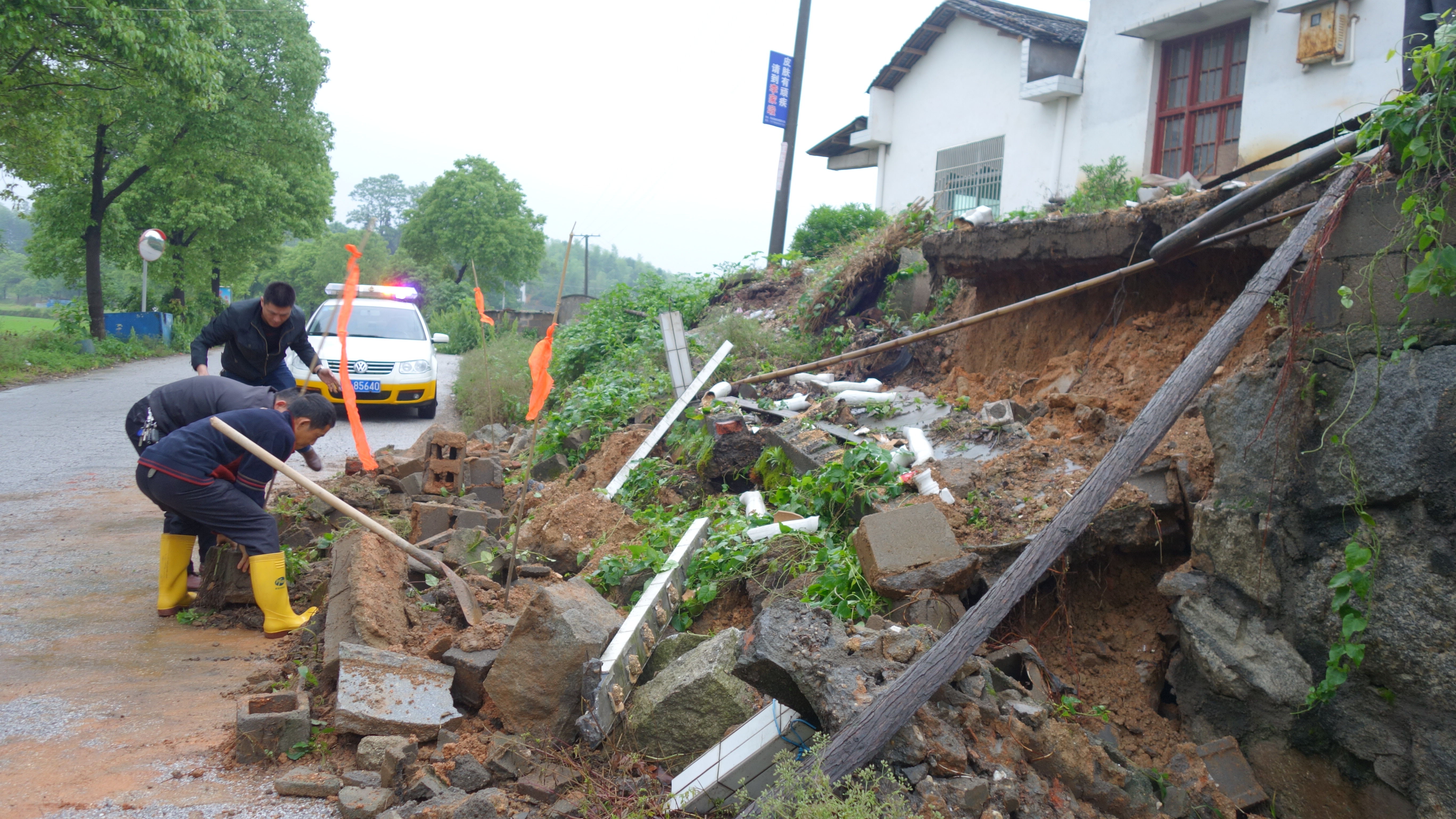 5月9日下午5点10分,正冒着大雨巡路完毕准备回家的工务股技术员傅玉林、彭罗突然接到群众来电,说是张傲线9K+200挡土墙倒塌,严重影响交通畅通。险情就是命令,两人来不及回家吃饭,立即调转车头赶往出险地点。并得之负责张傲线养护的舒林辉已到了出险地点。至终点才知由于连日的暴雨冲刷了路旁住户的挡土墙,致使3米高的墙体倾塌,倒塌的石块、泥土占了大半边公路,如不及时清除,后果不堪设想。傅玉林当机立断,先把路中间的石头、泥土等清理,先保通再进一步处理。眼见天都快黑了,启用警告标志已经来不及。他们两人与舒林辉从农户家借来红布、竹竿等当成临时警示标志,并借来铲子等工具,三人抬的抬、铲的铲,冒着大雨硬是在天黑之前把路面上的障碍物全部清理至路旁。临走之时傅玉林又将第二天挡土墙的进一步清理及修复工作作了详细布置,方才安心返回。
