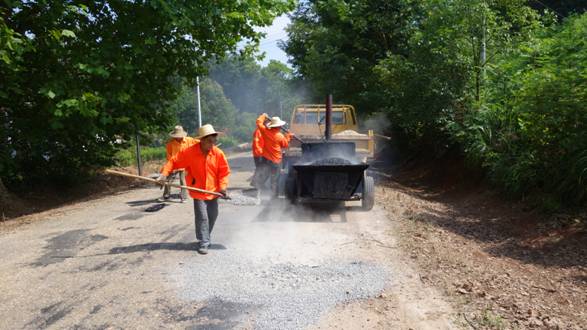 近日汨罗温度直线上升,酷暑逼人,当大家都在谈论“如何避暑”,恨不得24小时待在空调房里的时候。6月22日我随养护的技术人员到了北片公路,见到的却是热气升腾中一群辛劳的身影趁“热火补路”感人的场景。上午10点,室外温度已是38度,黄市站内20余桶沥青整齐的排列在院中,浓烈的沥青味道直呛鼻孔,站长熊建良正低着头往油灶中添柴,熊熊的火焰把一桶桶的沥青煮得黑烟滚滚。到了新白线,4名站员正拖着一车砂和沥青补油面。扬起的砂石灰尘混着刚烧融的沥青,隐隐见到湿透了的红色标志服,还有那黝黑的淌着汗水布满沥青油点的脸庞。黑得发亮鼓着青筋握着铁铲、油瓢遒劲的大手,挥舞着铁锹正将碎石均匀地撒向坑槽。另一名站员则迅速将滚烫的沥青浇上,湿透的衣服,黏在瘦弱的衣背上,一层厚厚的“盐白”格外醒目。这一幕正是黄市站的站员利用久雨后的晴好天气抢修烂路。一路人问“这么热你们为什么还不回去休息”,憨厚的他们抹了把汗,笑着说“想趁着中午气温高、车辆少的有利条件,抓紧再补几块柏油路。”同行的工务股长傅玉林告诉我,除新白线外其他的几条主要干线也都在利用高温天气补油面,因为高温可以让沥青拌合料(俗称油石子)与路面更好地黏合,使路面更加紧实、平整。“现在是补路的最佳时节,他们一般早晨5、6点钟出发,到这儿7点钟左右,然后就开始工作了。如果用的是沥青拌各料还必须一次性把整车料用完才能休息,因为冷却了的沥青拌合料会失去黏性,不能贴合老路面。工作到下午2、3点才休息、吃中饭的情况都有。看着、听着,心中油然升起一股敬意,唯有祈愿可敬的他们不要中暑,平平安安、健健康康。