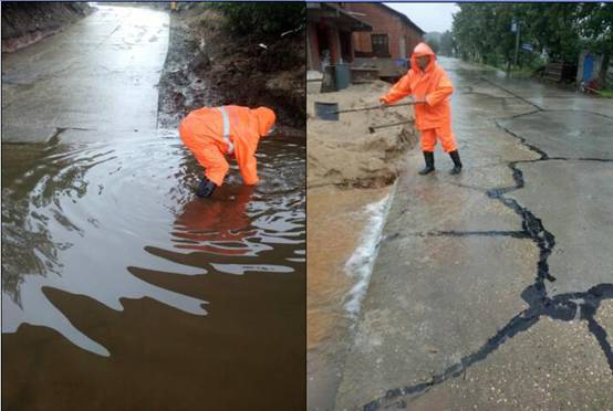 三名养路工24小时待命排除路面积水