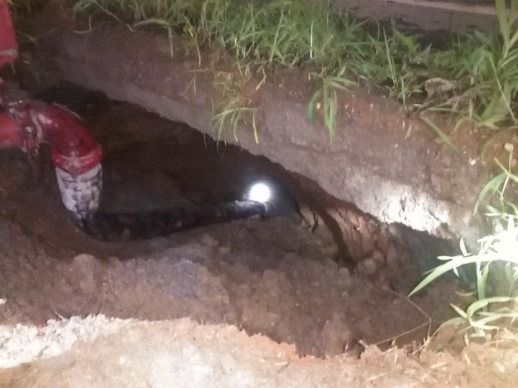17日晚19:50左右,S208最江线K16+600左侧路基突然塌陷并形成坑洞,坑洞直径约1.5米左右,深6-7米,并延伸至路面以下。由于该路段属于河堤路段,坑洞外侧是滚滚源潭河水,另一侧便是聂市镇黄盖村内垸,塌空路段受河水冲刷浸泡极易发生溃堤险情,严重危及内垸近万名群众的生命财产安全。