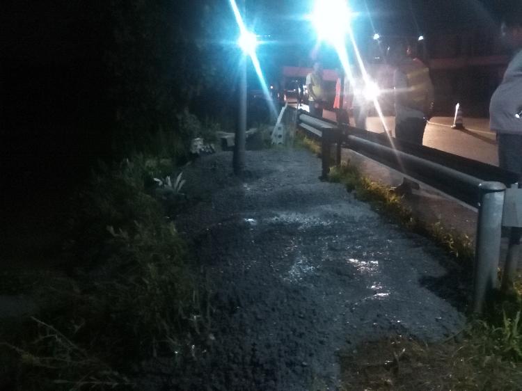 凌晨12:39,该局养护人员现场清基完毕后,第一车混凝土开始灌注,01:40,两车共计23立方的混凝土灌注完成。经过近6小时的奋力抢险,险情得到有效控制,现场交通管制解除,道路恢复正常通行。