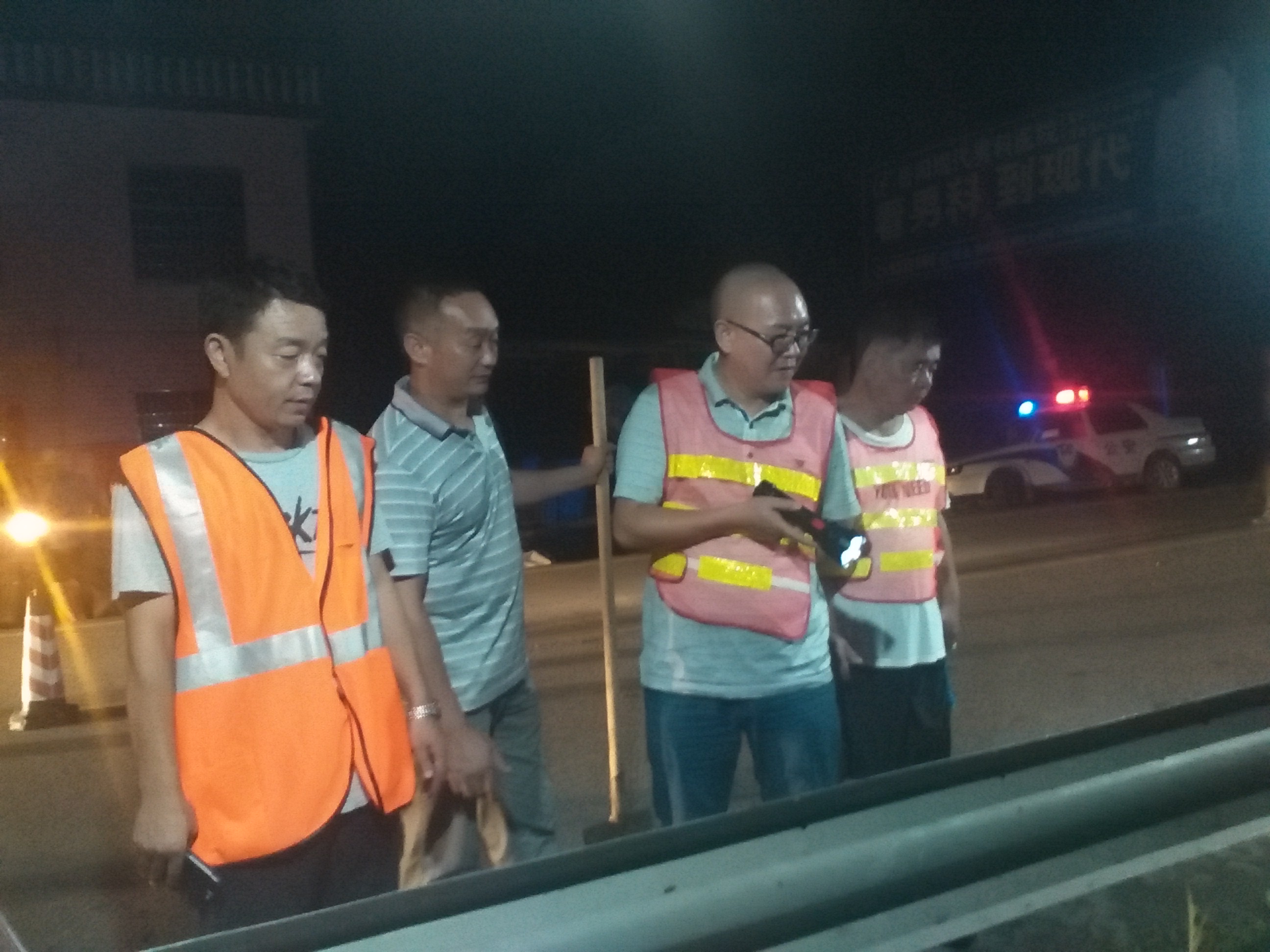 在抢险现场,闻讯而来的市委副书记、市长汪灿现场督阵,临湘公路局局长谢学文和2名技术副局长现场指导抢险施工,公安交警拉起了警戒线,对险情路段实施紧急交通管制,电力部门架设了应急照明设施,当地镇村干部做好了应急动员,整个抢险现场紧张而又有序。