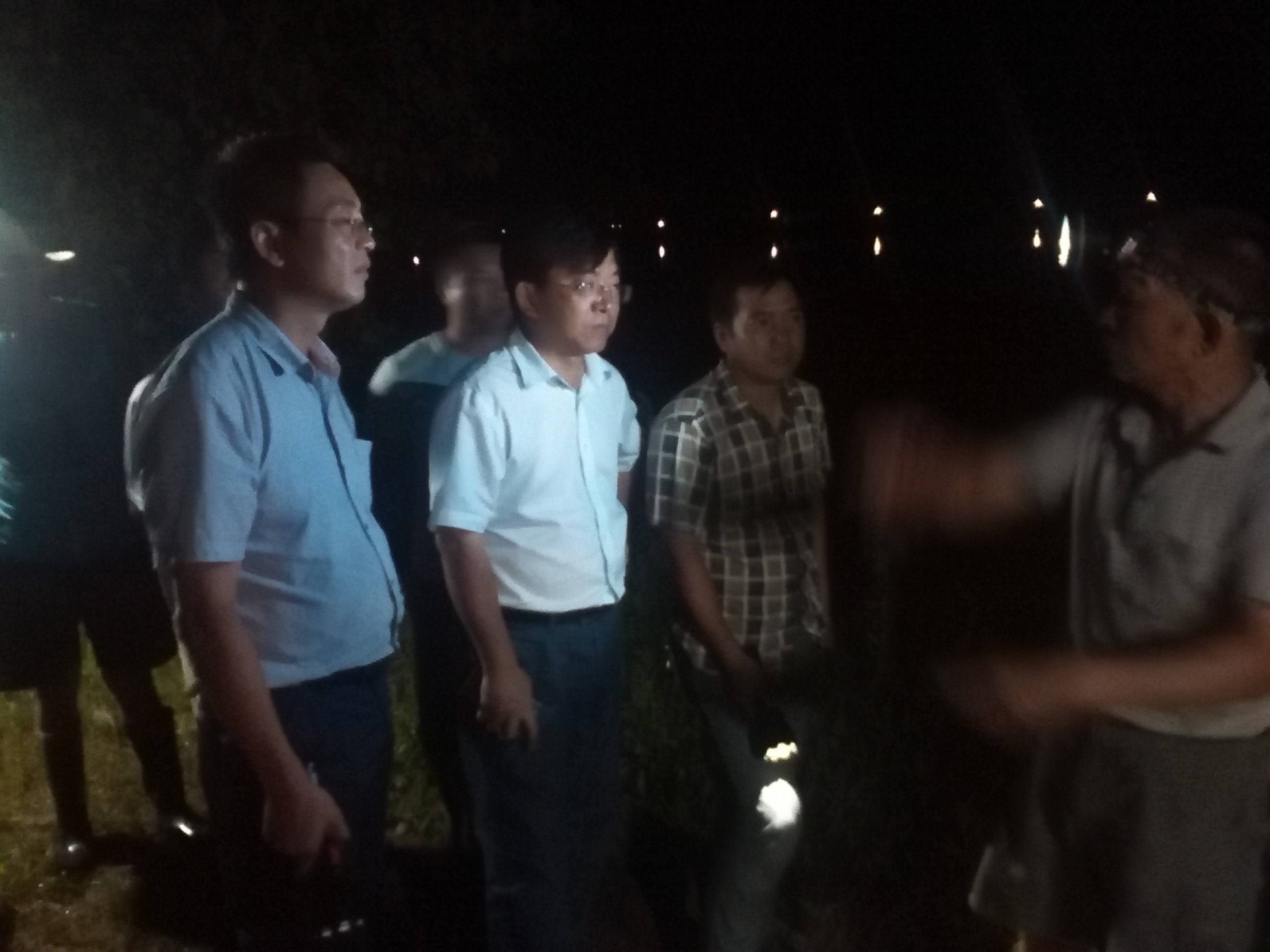 临湘市委副书记、市长汪灿(白衬衫者)听取险情汇报