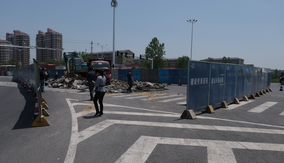 4月28日,在君山区杭瑞高速连接线红绿灯路口,传来阵阵机械的轰鸣声,在做好了安全防护措施的现场,我们看到一台大型挖掘机和数台工程车辆正在紧张的施工。