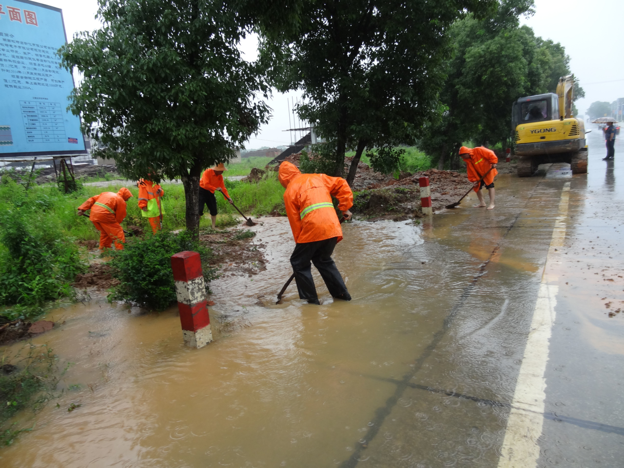8月12日一场暴雨,我局路面多处漫水、有的交通受阻。尤其是S202线K19+200、S306线K153+800地段浸水深度达20多厘米,灾情就是命令。华容县公路局迅速启动防洪应急预案,相关负责人顶风冒雨,亲临一线指挥道路抢险工作,安排养护人员及一台挖掘车进行抢修,抢通受阻路面1.5公里,及时疏通水系800多米,经过抢险人员的抢通工作,受阻道路已基本抢通。