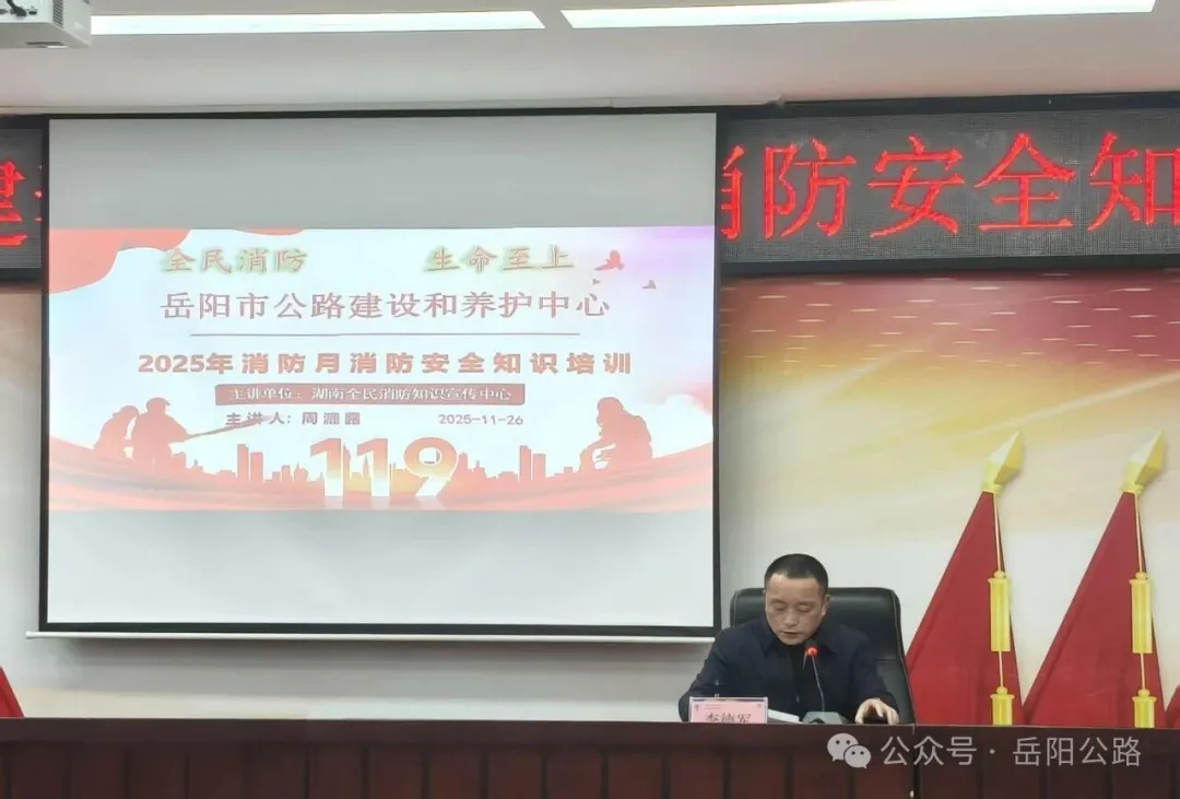 为深入贯彻落实11月全国消防宣传月“全民消防,生命至上——安全用火用电”主题活动,进一步提升干部职工消防安全意识和应急处置能力,11月26日,岳阳市公路建设和养护中心举办消防安全知识培训。