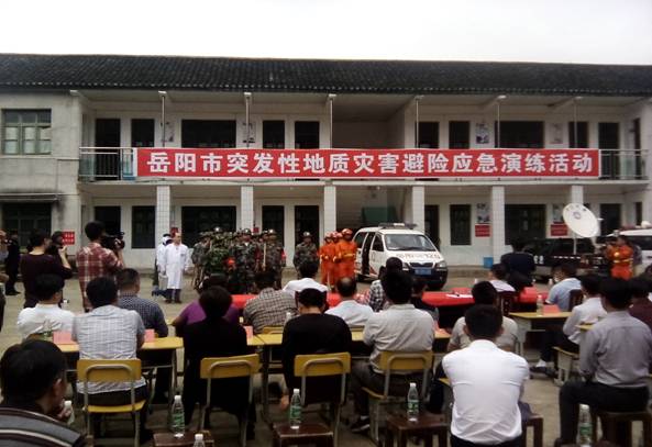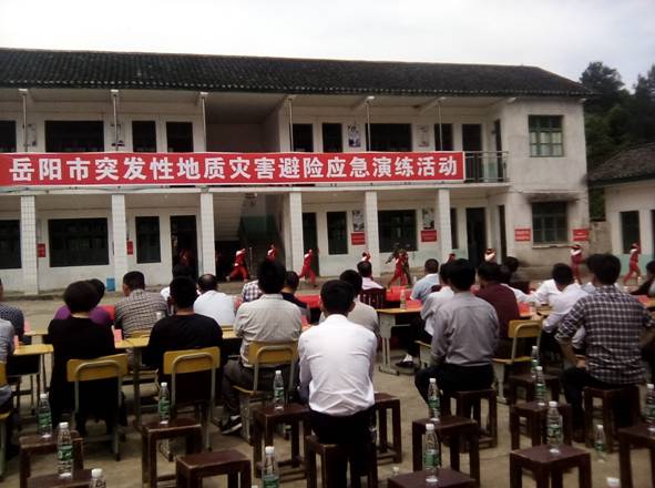 4月28日,岳阳市突发性地质灾害避险应急演练活动在平江县瓮江镇石坳学校举行。