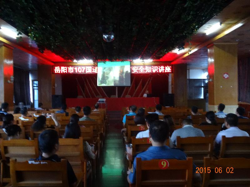 6月2日上午9点,107处邀请岳阳市消防支队的教官在二楼大会议室举办了消防安全知识讲座。处机关和处属各单位共60多人和物业公司的管理人员一起听了讲座。讲座内容有火灾事故案例分析,消防器材的正确使用,火灾中的灭火和逃生知识的讲解,重点介绍了单位和家庭的防火知识。