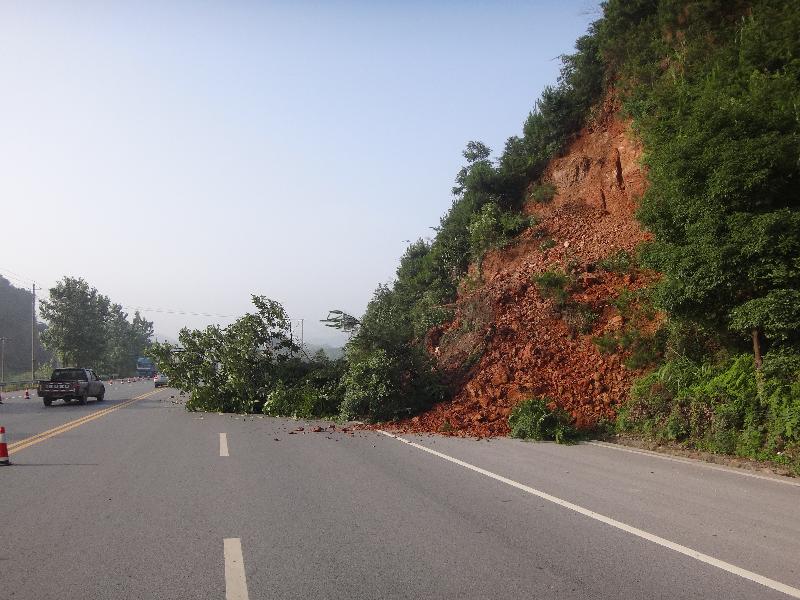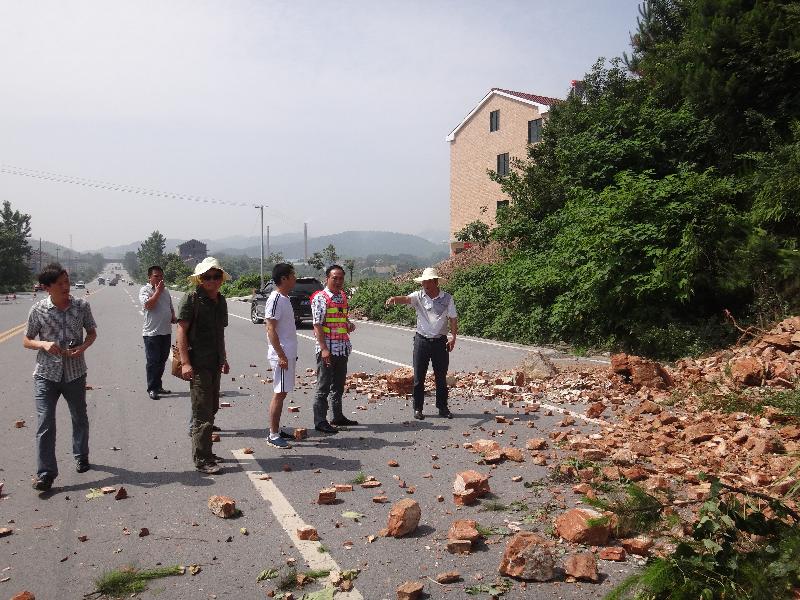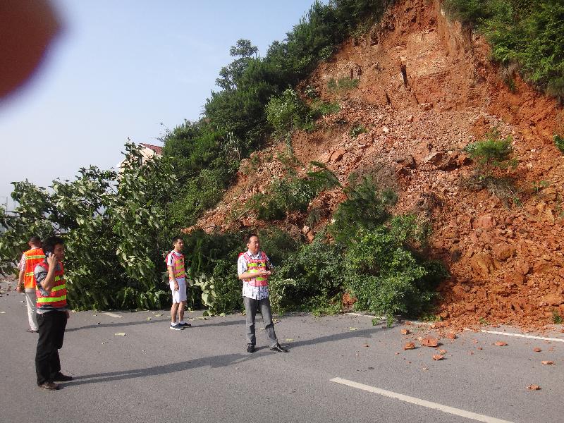 6月12日5时50分,岳兴所副所长张陆生同志被一阵急促的铃声闹醒,养护值班人员告知岳阳殡仪馆路段出现山体滑坡。