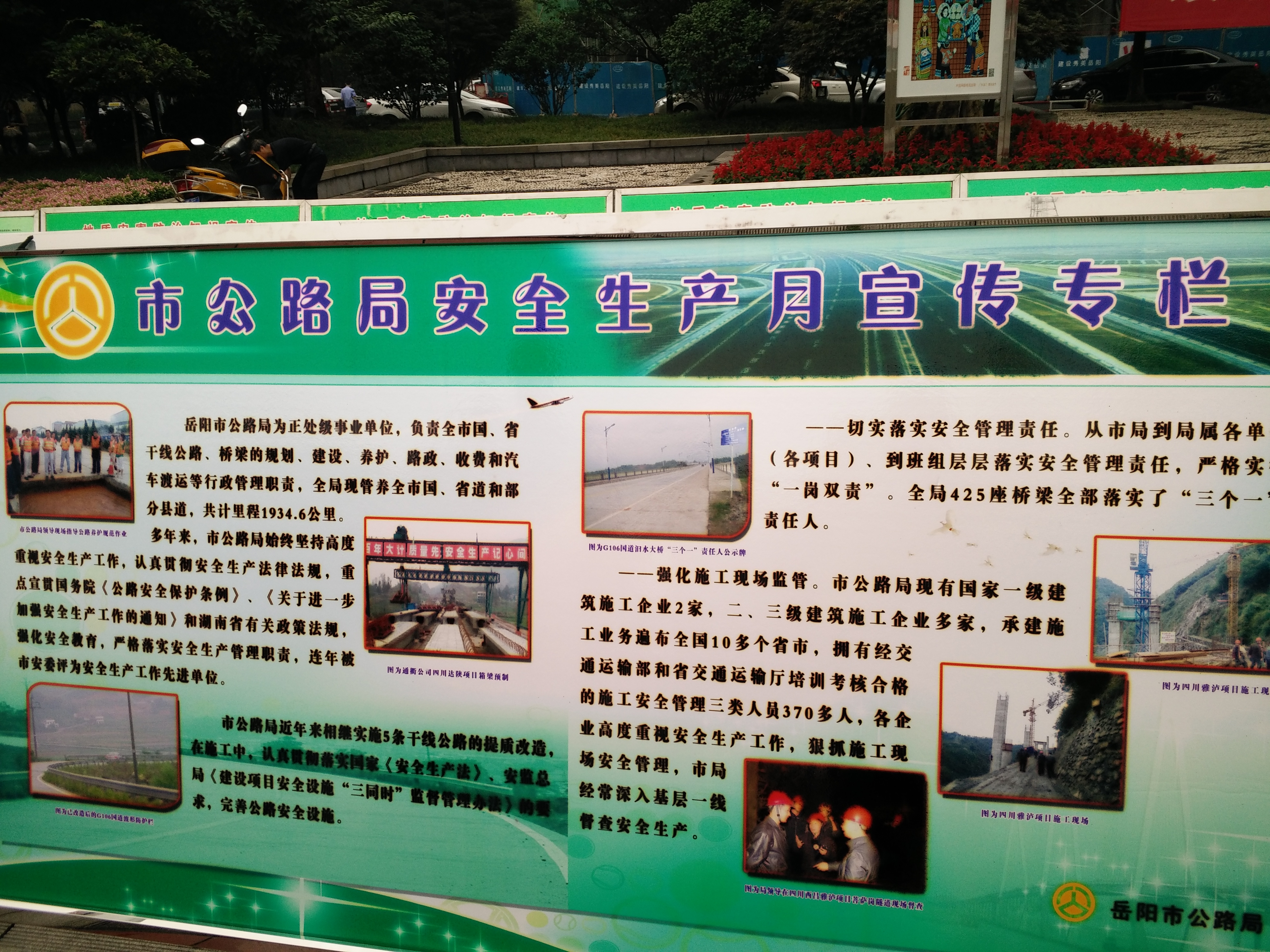 6月16日上午,岳阳市安全生产委员会组织安委会成员单位在市区开展安全生产咨询日活动。市安监局、市经济开发区安委办、市交通运输局、市公路局、市交警支队、市城市公交管理局、市道路运输管理局、市铁路管理处等多部门共同联合,组成宣传小组,以“加强安全法制,保障安全生产”为主题,在金鹗山公园广场上开展“安全生产月”宣传咨询日活动。