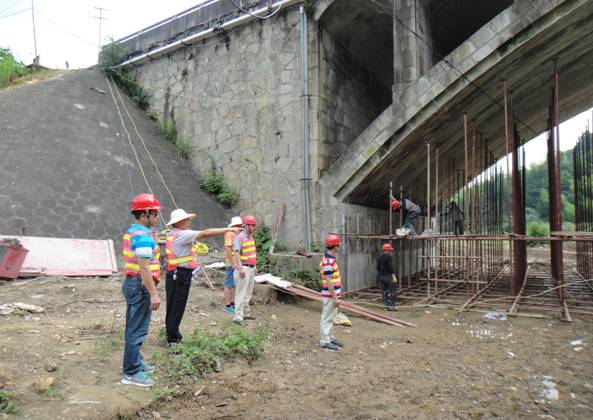 6月20日是传统节日端午节,大多数人都在忙于走亲访友,享受假期带来的喜悦,我局分管公路建设的局领导却主动放弃节假日休息,带领局安机股及路桥施工队负责人来到S308线平伍路危桥改造工地,慰问战斗在施工一线的所有施工人员,同时,对安全生产工作进行全面督查。督查组一行8人,针对平伍路危桥改造项目任务紧、工期短、工作量大的特点,认真仔细检查每道工序、每个环节的安全措施落实情况,纠正临时用电、施工人员穿戴着装上存在的问题,利用午间休息召开安全、技术碰头短会,明确问题整改措施与时限,强调安全生产、质量的重要性,并祝贺大家节日愉快。