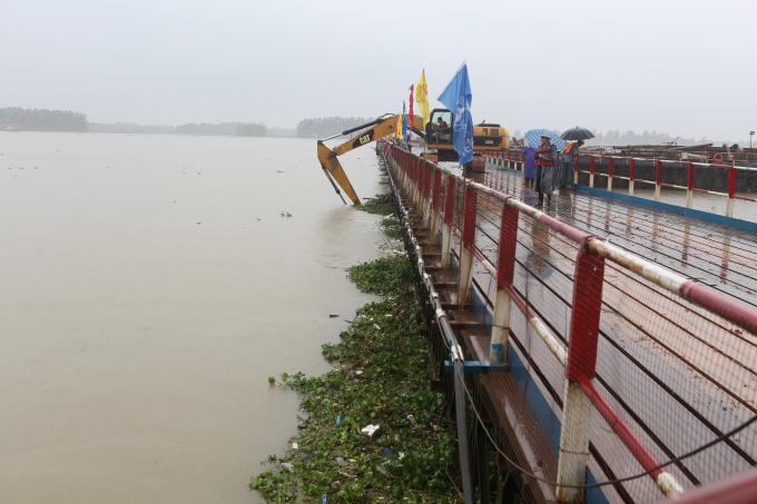 7月2日,沅江小河嘴水位突破警戒线水位34米;7月4日凌晨两点,白沙河达到34.44米;强降雨在持续,4日上午9时,五强溪水库开始开闸泄洪,水位一路攀升,岳阳路桥南益八标白沙特大桥钢便桥正面临主汛期的严峻考验。