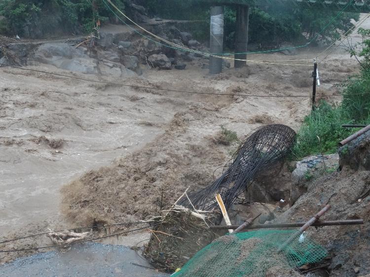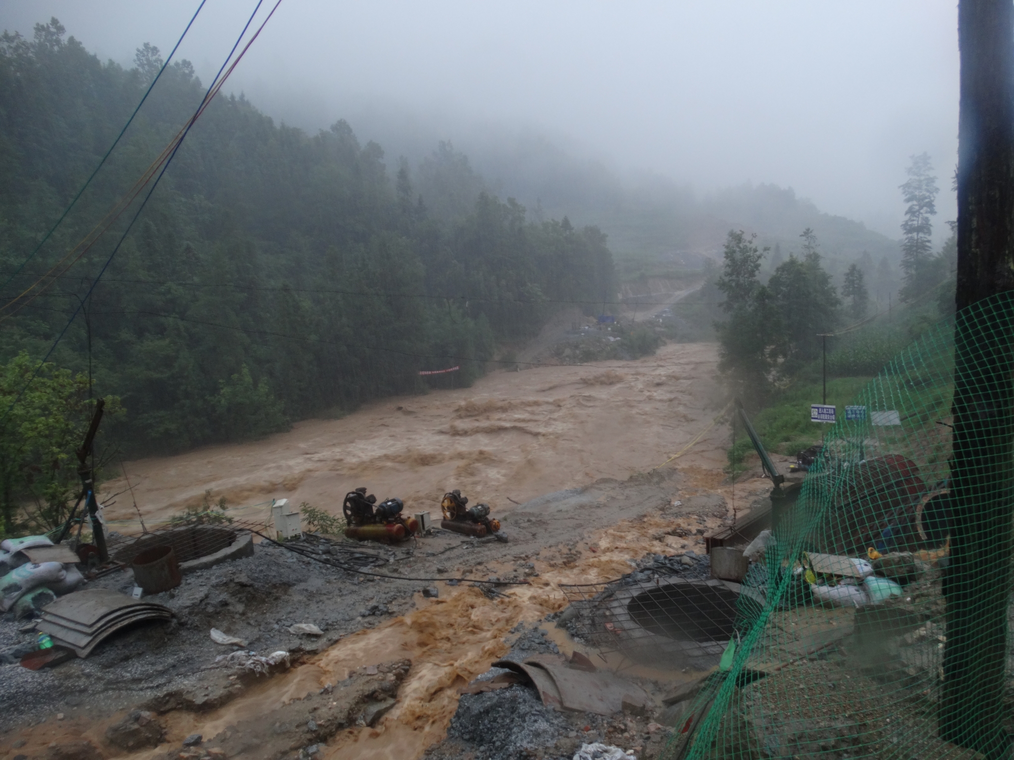 7月18-7月19岳阳市通衢兴路公司承建的四川省桃巴高速LJ4标项目遭遇了特大暴雨,持续暴雨致水位迅速猛涨,导致当地20万居民交通、电力和通讯全部中断,也给项目造成了巨大的困难和损失。面对暴雨的突袭,该项目部积极应对,迅速展开了抗洪抢险工作。