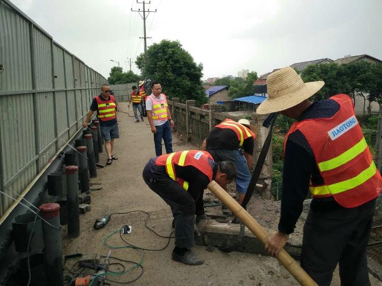 横贯京广铁路之上的罗城桥是连接汨罗城东、城西的主要通道,该桥护栏系上世纪70年代修建,如今混凝土剥落、漏筋严重,存在很大的安全隐患,岳阳及汨罗市人民政府均已下发督办涵,要求拆除护栏重建。日前,汨罗市公路局将其改建成不锈钢护栏,采用高挡板全封闭式施工,消除京广铁路运输安全和群众通行安全。同时将悬挂于桥梁外侧的电信、移动、电力缆线全部拆除,统一经由人行道预留的管道。由于施工关系到京广铁路的安全通行,安全防护为本次施工的重中之重,汨罗公路局为此做了充分的准备,主要管理人员、驻站联络员及工地防护员经过了铁路施工安全培训。在护栏拆除、基础砼浇筑、护栏安装时需要封锁线路,接触网停电,汨罗市公路局始终保持与长沙铁路工务段、电务段、车务段紧密联系,随时应对各种突发情况的出现。罗城桥的护栏更换安全隐患整治是岳阳地区所有跨京广铁路桥安全隐患整治中方案最优、质量最好、与铁路部门协调工作最到位的一个项目,得到了广州铁路集团长沙工务段、岳阳市公路局、汨罗市政府的一致肯定。
