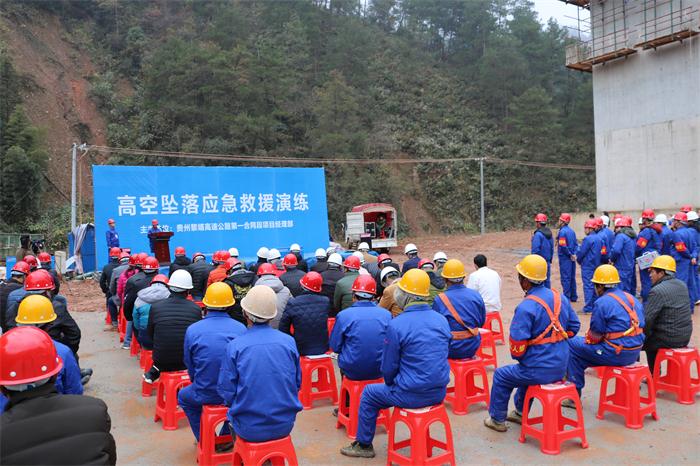 根据黎靖高速公路突发事件应急管理要求,12月2日上午,黎靖高速公路第一合同段三工区在江草坝大桥3#墩施工现场组织开展了高空坠落事故应急救援演练。黎靖公司、黎靖高速总监办、第一合同段1工区、2工区、第二合同段主要负责人和安全生产管理人员观摩了此次演练。