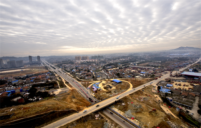 公司承建的临湖公路皇姑塘立交桥是连接岳阳城市规划新区的交通枢纽和对外主要通道,采用“半苜蓿叶+大回旋”半定向的立交形式建设,项目总投资4.6亿元,工期17个月,预计2017年5月31日竣工通车。立交主线(G107)采用城市快速路标准建设,设计时速80公里,双向六车道;巴陵东路采用城市1级主干道标准设计,设计时速60公里,双向六车道。该项目的建成,将进一步完善我市干线路网,缓解城区交通压力,提升城市形象,促进市域经济发展。