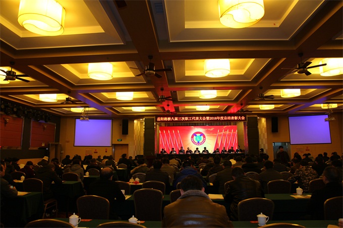 2月8日上午,岳阳路桥八届三次职工代表大会暨2016年度总结表彰会顺利召开。会议回顾总结了过去一年的工作,分析研判公司当前面临的机遇与挑战,明确了2017年的总体目标和具体工作安排。市公路局党委书记、局长冯嘉皇、总工程师徐军以及相关部门负责人出席了会议。会议由公司党委书记毛响宝主持。