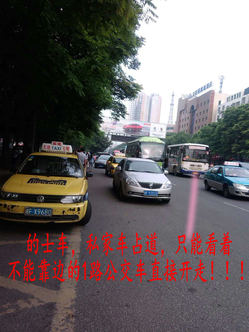 交警不执勤后,交通又是一团糟! 的士车,私家车占道,公交车不能靠边上下客,直接开走。。。  (附上照片)