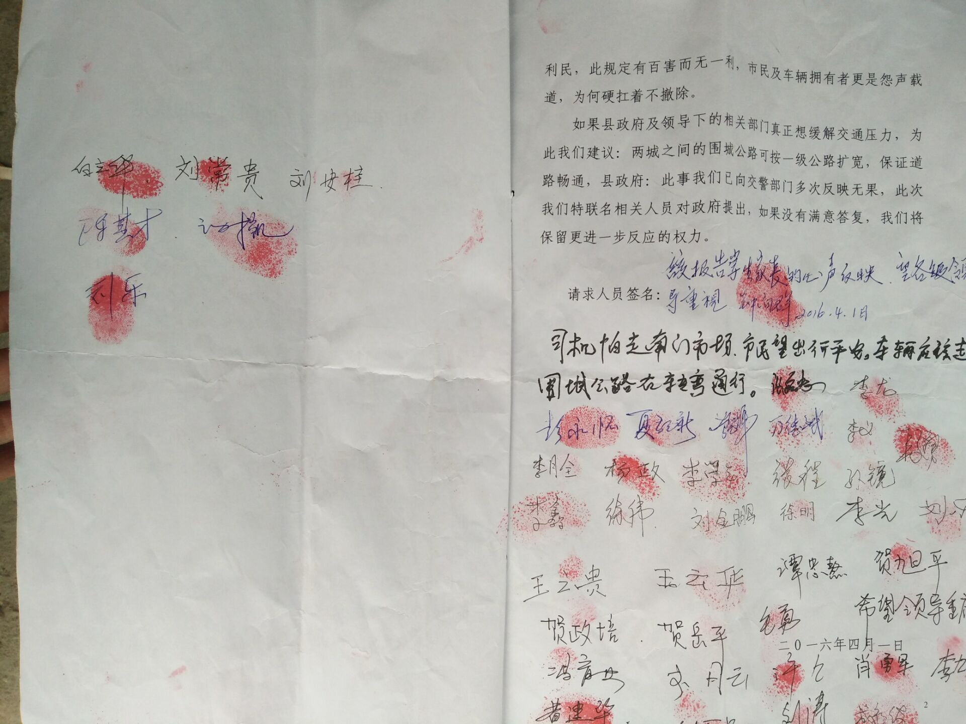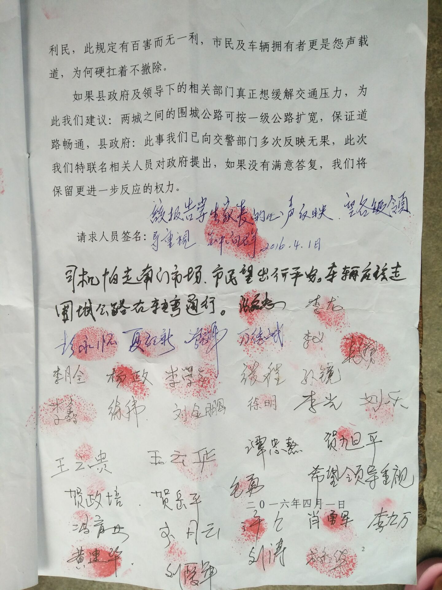 据此,我们强力要求由政府出面干预,撤销华容县治河渡大桥至华容一桥围城公路禁止右行的规定。