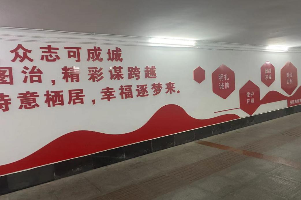 标题: 岳阳大道会展中心前地下通道文化墙字迹残缺,需要修补
